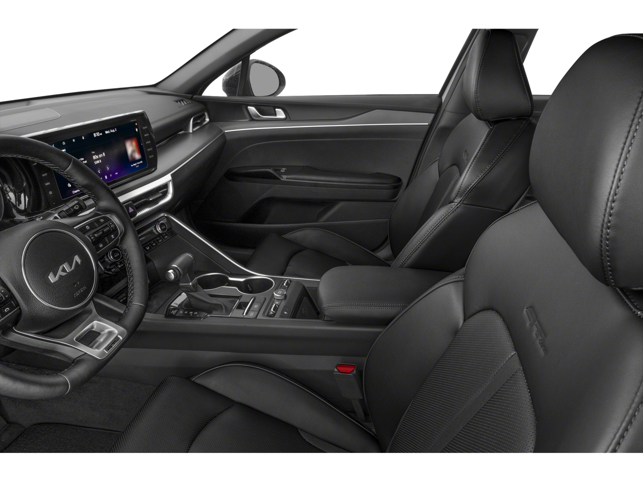 Romeo of Saratoga is proud to present this 2023 Kia K5 with GT-Line Premium Package (Forward Collision Avoidance-Assist, Highway Driving Assist, LED Projection Headlamps, and Smart Cruise Control w/Stop & Go), GT-Line Red Interior Package, 4-Wheel Disc Brakes, 6 Speakers, ABS brakes, Air Conditioning, Alloy wheels, AM/FM radio: SiriusXM, Apple CarPlay & Android Auto, Auto High-beam Headlights, Automatic temperature control, Brake assist, Bumpers: body-color, Cargo Net, Cargo Tray, Carpeted Floor Mats, Cloth/SynTex Seat Trim, Delay-off headlights, Driver door bin, Driver vanity mirror, Dual front impact airbags, Dual front side impact airbags, Electronic Stability Control, Four wheel independent suspension, Front anti-roll bar, Front Bucket Seats, Front Center Armrest, Front dual zone A/C, Front fog lights, Front reading lights, Fully automatic headlights, Heated door mirrors, Heated Front Bucket Seats, Heated front seats, Heated steering wheel, Illuminated entry, Knee airbag, Low tire pressure warning, Mud Guards, Navigation System, Occupant sensing airbag, Outside temperature display, Overhead airbag, Overhead console, Panic alarm, Passenger door bin, Passenger vanity mirror, Power door mirrors, Power driver seat, Power steering, Power windows, Radio data system, Radio: AM/FM/MP3 Audio System, Rear anti-roll bar, Rear seat center armrest, Rear side impact airbag, Rear window defroster, Remote keyless entry, Security system, Speed control, Speed-sensing steering, Split folding rear seat, Spoiler, Sport steering wheel, Steering wheel mounted audio controls, Tachometer, Telescoping steering wheel, Tilt steering wheel, Traction control, Trip computer, Turn signal indicator mirrors, Variably intermittent wipers, Wheel Locks, and Wheels: 18 Gloss Black Machined Finish Alloy.