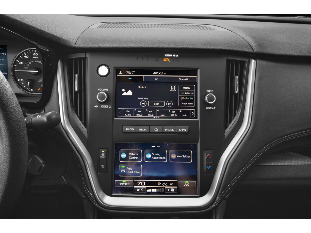 - Radio: Subaru STARLINK Dual 7.0" Multimedia System -inc: AM/FM stereo, HD Radio, multi-touch gesture high resolution display screen, voice activated controls, Bluetooth audio streaming and hands-free phone connectivity w/SMS text messaging, iPod control capability, SiriusXM All Access radio (4 months free trial/subscription required after), SiriusXM Travel Link (4 months free trial/subscription required after), smartphone integration: Android Auto, Apple CarPlay and STARLINK cloud applications, USB audio system update, 4 speakers, 3.5mm illuminated front auxiliary input jack, illuminated front USB-A and USB-C input/charge port and roof mounted satellite antenna